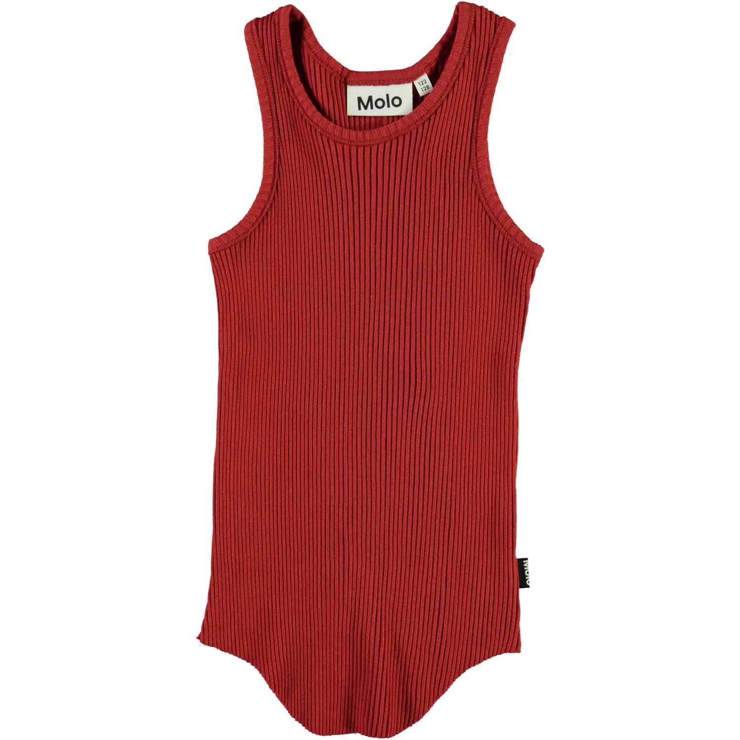 Roberta är ett fint rött ribbat linne, som är något kortare i sidorna.