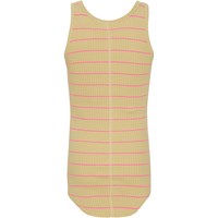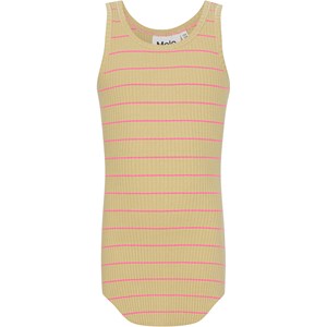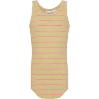 Roberta är det perfekta linnet i ekologisk bomull. Toppen är soft gul med tunna rosa ränder och går ner lite längre fram- och baktill.