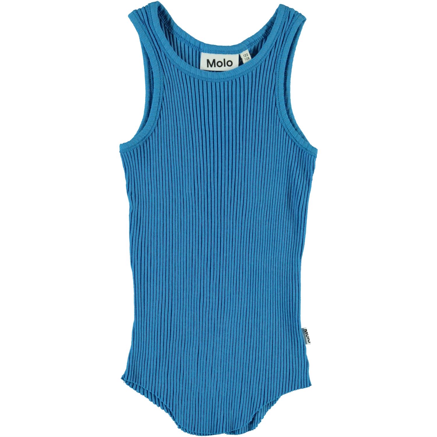 Roberta är ett fint blått ribbat linne, som är något kortare i sidorna.