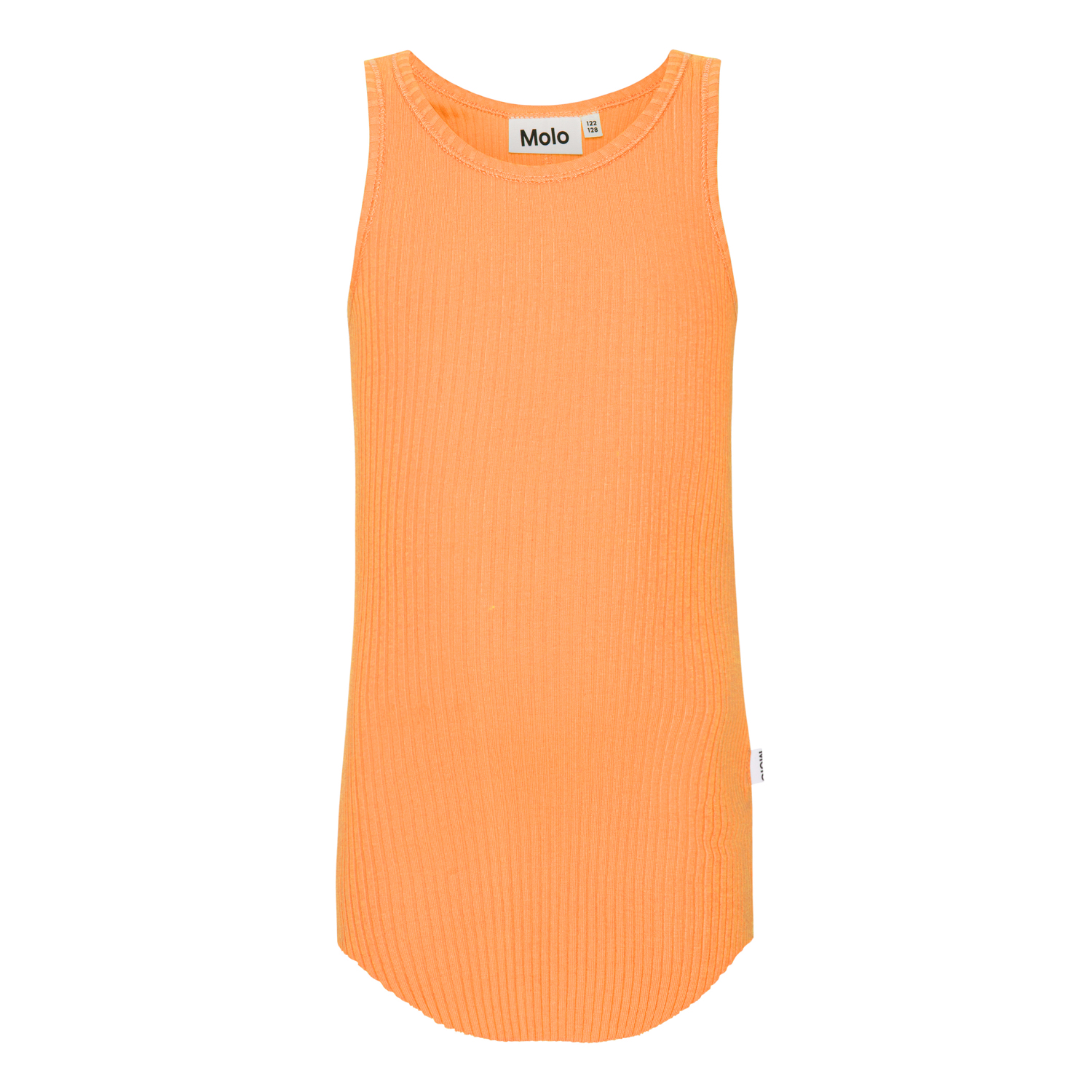 Roberta är det perfekta orangea linnet i ekologisk bomull. Toppen är i ribb och går ner lite längre fram- och baktill.