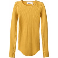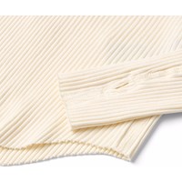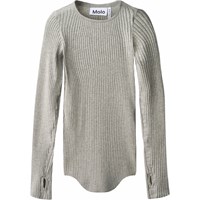 Off-white långärmad topp i stretchig, ekologisk bomullsribb med en åtsittande passform, en rund halsringning och råa kanter på båda ärmarna med tumhål. Dessutom har toppen en vertikal söm ner längs mitten av ryggen och en rå, rundad kant i midjan.