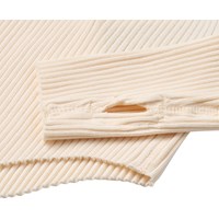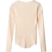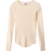 Off-white långärmad topp i stretchig ekologisk bomullsribb. Toppen har en åtsittande passform, rund hals, råa kanter vid botten och ärmar, samt tumhål.