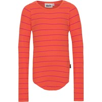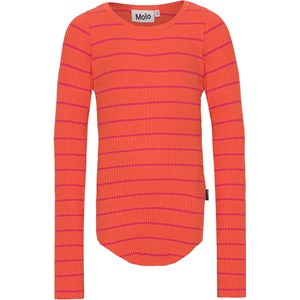 En äkta Molo klassiker i spännande och ny tolkning.Långärmad tröja med hål för tummen och ränder i röd och rosa. Denna tröja är tillverkad i 100% bomull, rund hals och smal passform. Den perfekta tröjan som kan användas med en stickad tröja eller jacka över, eller bara som den är.