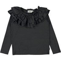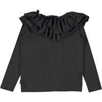 Rosamond är en svart långärmad blus med asymmetrisk volangkrage. Rochelle är den perfekta svarta blusen som du aldrig får nog av. Blusen är ribbad och har ett hål för tummen.