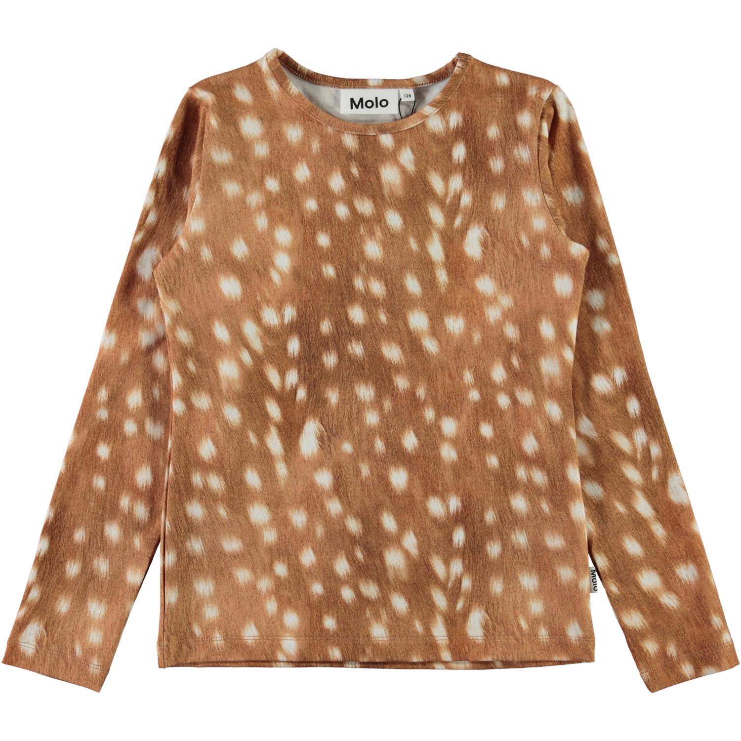 Rose är en långärmad brun tröja med ett tryck av vita fläckar, som ser ut som rådjurspäls. Tröjan har en rund halsringning.