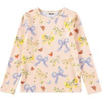 Rosa långärmad topp i ekologisk bomull med rund hals. Toppen har en åtsittande passform med färgglada blommor och fjärilar.