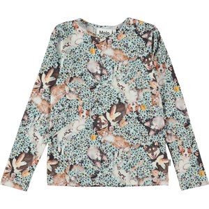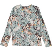 Rose är en långärmad tröja i ekologisk bomull. Rose är i mönstret Park Life, där kattungar och hundvalpar rullar sig i en blå blomsteräng.