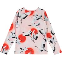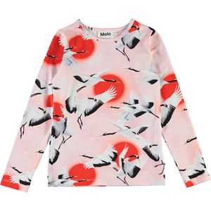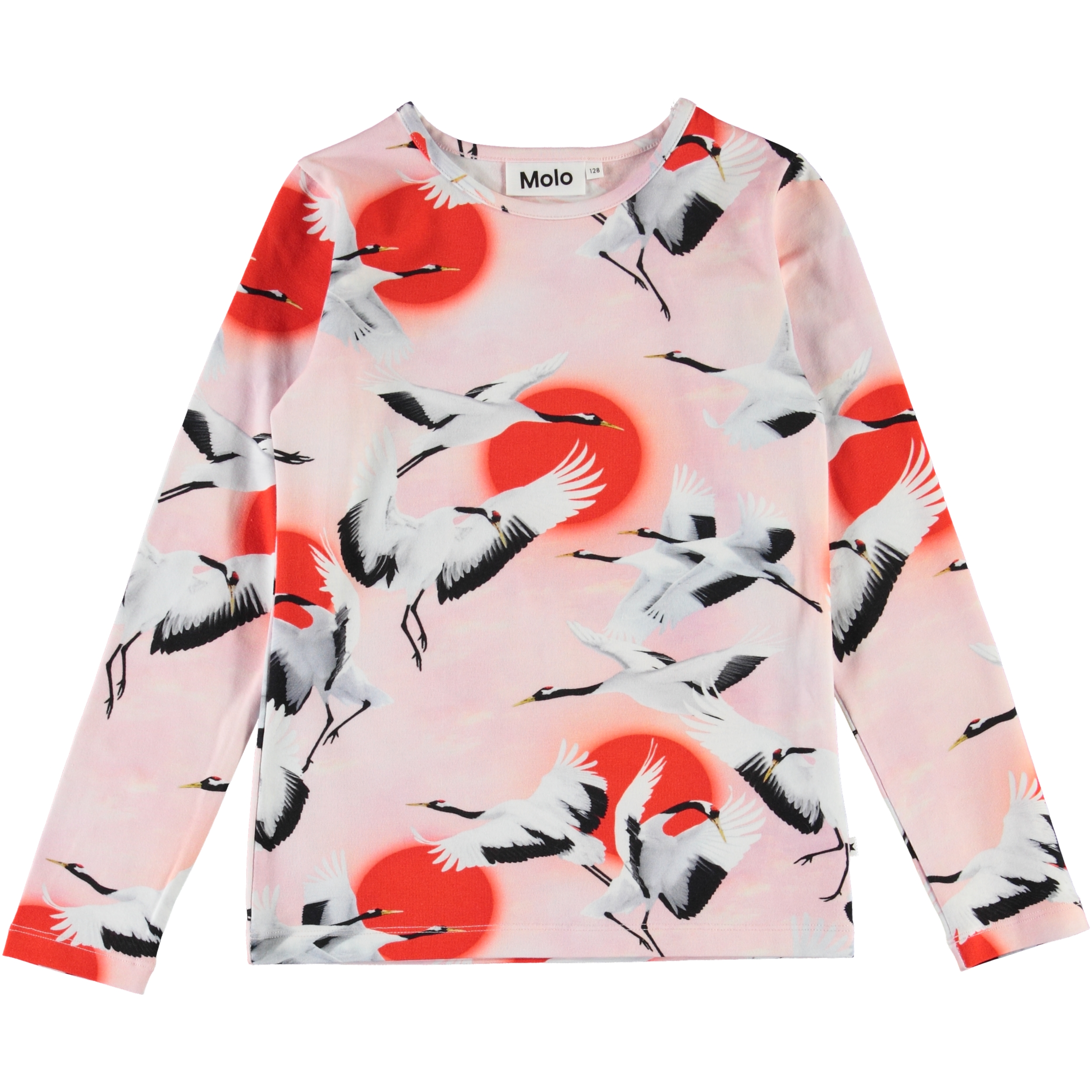 Rose är en långärmad tröja med stora röda prickar och flygande tranor på. Rose har en rund halsrigning.