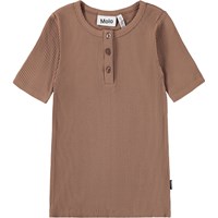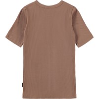 Brun figursydd T-shirt i mjuk viskosribba med rund halsringning och tre matchande knappar framtill.