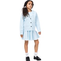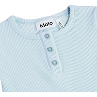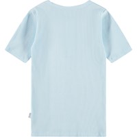 Ljusblå figursydd T-shirt i mjuk viskosribba med rund halsringning och tre matchande knappar framtill.