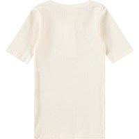 Off-white figursydd T-shirt i mjuk viskosribba med rund halsringning och tre matchande knappar framtill.
