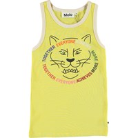 Rosie är ett gult linne med vita kanter och tiger tryck framtill.
