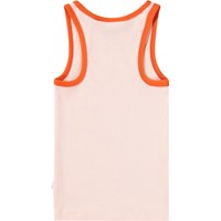 Rosa linne i mjuk ekologisk bomull med rund halsringning och röd kant runt halsen och ärmhålen. Linnet är figurnära med ett hjärtmönster på framsidan.