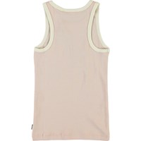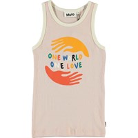 Rosie är ett rosa linne med vita kanter och texten 'One world, one love’.