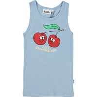 Rosie är ett ljusblått linne i ekologisk bomull med ett körsbär framtill, tillsammans med budskapet "Let´s stick together".
