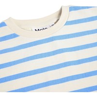 Kort T-shirt i mjuk, ekologisk bomull med blå och vita ränder, rund halsringning och ribbad kant. Den har en lös passform och är avslutad med broderie anglaise längs nederkanten.