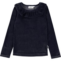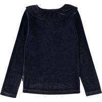 Rozlynn är en mörkblå tröja i velour med en fin volangkrage.