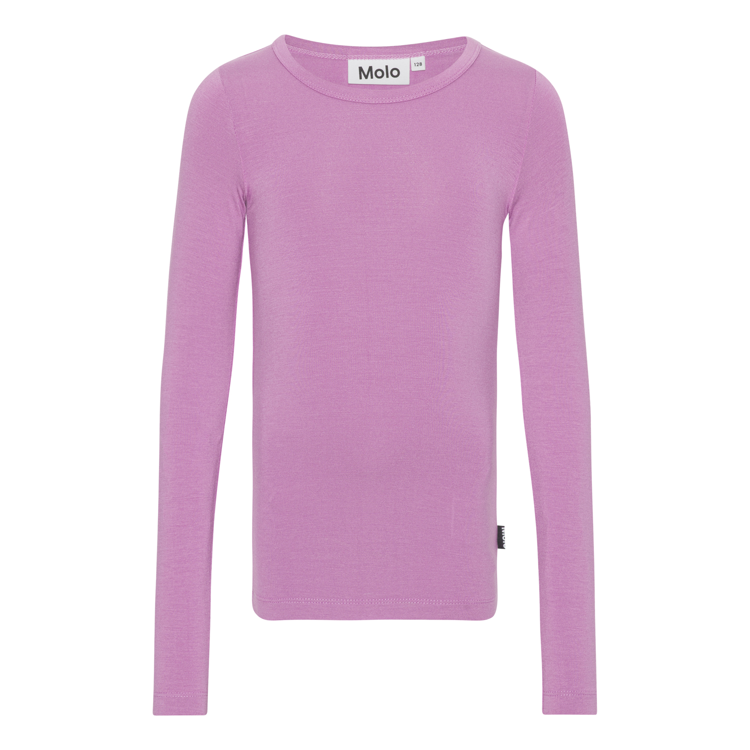 Lila långärmad tröja i 100% viskosjersey som gör den mjuk och skön att ha på. Den har rund hals och smal passform. Den perfekta tröjan som kan användas med en stickad tröja eller jacka över, eller bara som den är.