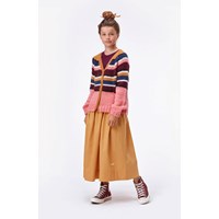 Gail är en randig stickad kofta som är rosa längst ner och senapsfärgad överst. Koftan har en v-ringning.