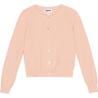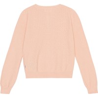 Puderfärgad kofta i mjuk ekologisk bomull. Koftan har ribbkant vid halsen, ärmar och nertill samt stickad i ett fint mönster. Koftan har långa ärmar och knappar framtill samt en bra passform.