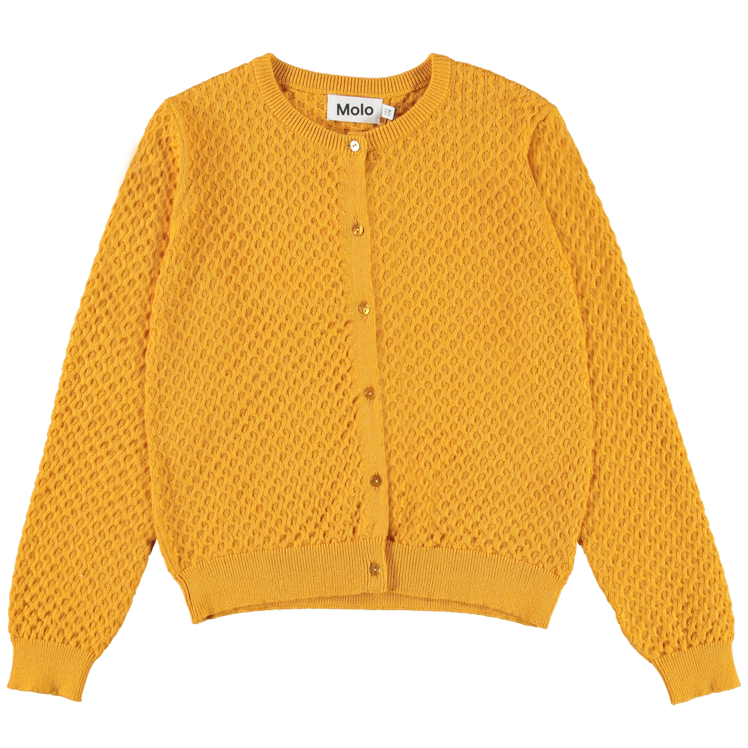 Goergina är en gul bomullskofta med knappar framtill.