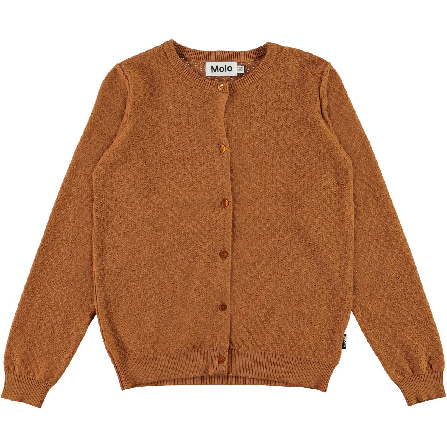 Georgina är en brun bomullskofta med knappstängning på framsidan. Tröjan är gjord av ekologisk bomull.