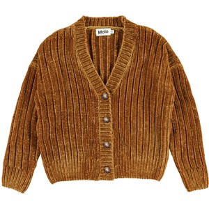 Gianna är Molos nya stickade kofta i chenille. Koftan är i en fin senapsgul färg och har en kort passform. Gianna har även en v-ringning och stängs med knappar framtill.