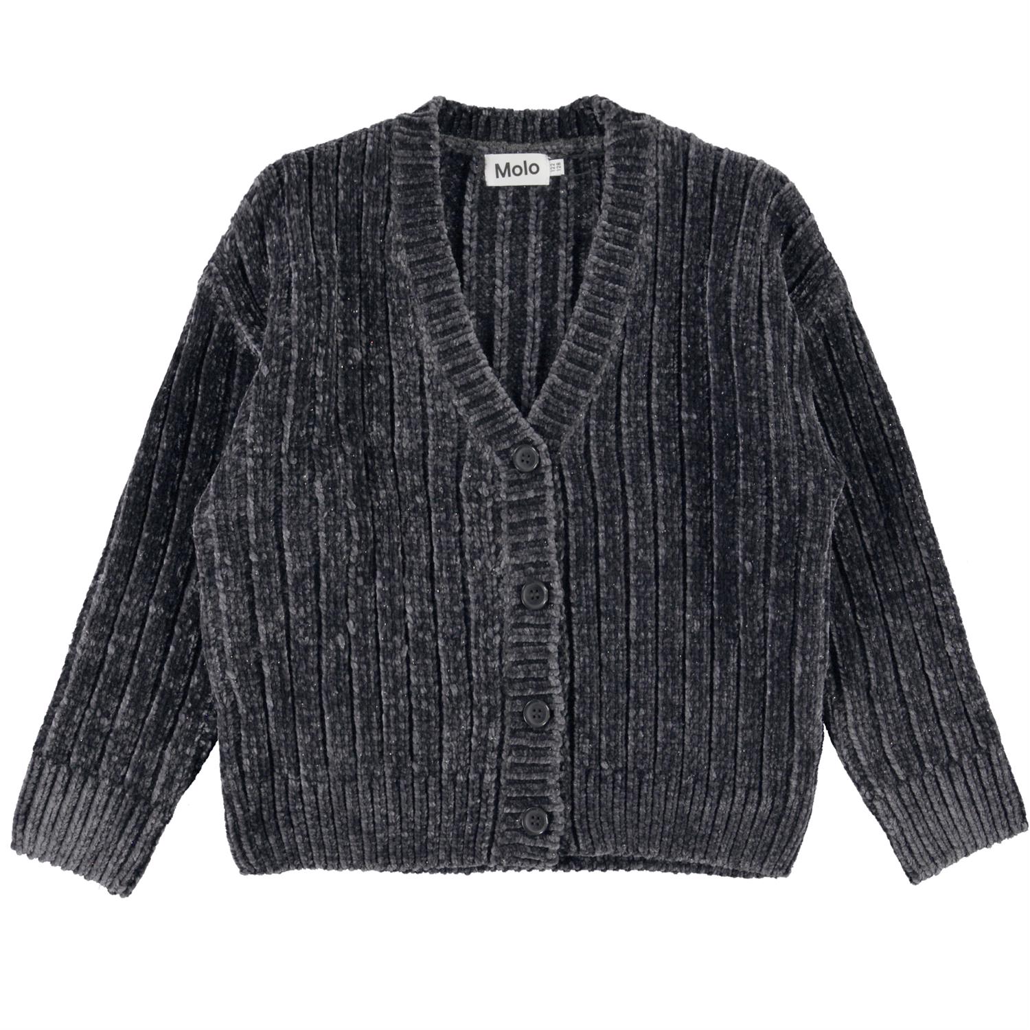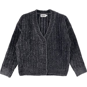 Gianna är Molos nya chenille stickade kofta i blått. Koftan har v-ringning, kort passform och knappstängning.