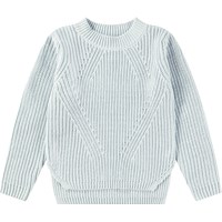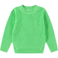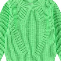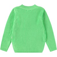 Grön stickad tröja i mjuk ekologisk bomull med en rund halsringning. Tröjan har en lös passform, är ribbstickad med delikata ökningar och minskningar, har extra längd baktill och slitsar i sidorna.