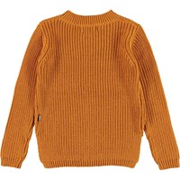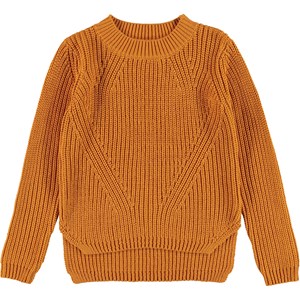 Gillis är en orange stickad bomullströja. Tröjan har rund hals och fint stickat mönster.