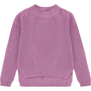 Lila mönsterstickad tröja. Denna stickade tröja är tillverkad i 100% bomull och är stickad i ett fint mönster. Den är något längre baktill, har rund hals med ribbkant, långa ärmar med ribbkant, ribbkant vid höften och en normal passform.