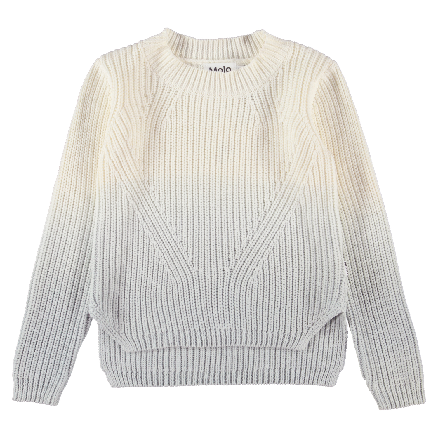 Gillis är en vit oh grå stickad tröja med dip dye och långa ärmar, i 100% bomull. Gillis är vit äverst och går därefter över i grå.