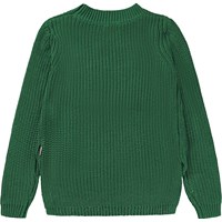 Grön mönsterstickad tröja. Denna stickade tröja är tillverkad i 100% bomull och är stickad i ett fint mönster. Den är något längre baktill, har rund hals med ribbkant, långa ärmar med ribbkant, ribbkant vid höften och en normal passform.