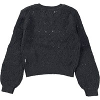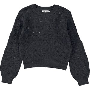 Svart stickad tröja med hålmönster. Denna stickade tröja ät tillverkad i en alpaca/ull blandning, har ett fint hålmönster, långa örmar med volym, rund hals med ribb, ribbkanter vid ärmar och höfter och en normal passform. Den perfekta vardagströjan.