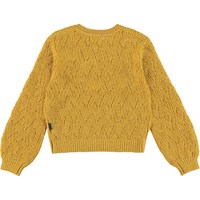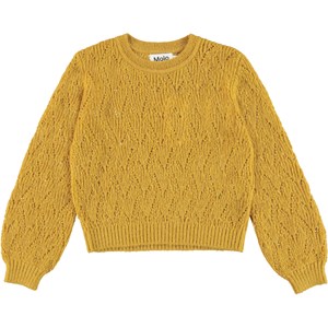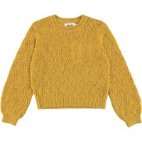 Ginger är en gul stickad tröja med fint hålmönster och klockfromade ärmar.