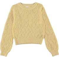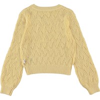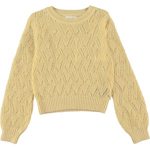 Ginger är en långärmad, gul, tunn stickad tröja. Ginger är stickad med ett fint hålmönster och har ribbstickad kant vid hals, handleder och höfter.