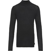 Gitte är en svart stickad tröja hög hals och ett fint ribbmönster. Tröjan är fin och mjuk eftersom den innehåller kashmir.