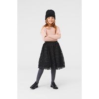 Glenda är en rosa stickad tröja med långa puffärmar Tröjan är ribbstickad med glittertråd, vilket gör den extra elegant.