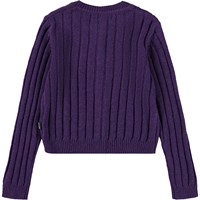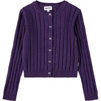 Lila kofta i en ullblandning. Denna kofta är figurnära, har ett ribbat mönster och fina knappar hela vägen ner fram.