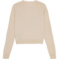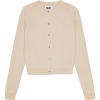 Den här koftan är i en härlig puderfärg och är tillverkad av ekologisk bomull. Den är fint stickad med en smal ribb och har en smalare ribbkant vid den runda halsen, ärmarna och nederkanten. Koftan har pärlemorknappar fram och har en tight passform..
