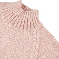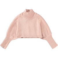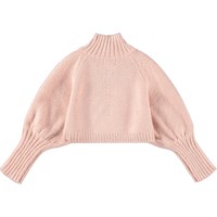 Rosa tröja i en blandning av alpackaull. Tröjan har ballongärmar, en hög ribbad krage, långa ribbade kanter runt ärmarna och midjan.