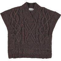 Gracelyn är en mörkbrun stickad poncho. Pochon har bra längd och v-ringning.