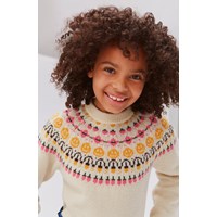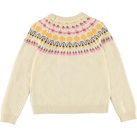 Gretchen är en ljus stickad tröja inspirerad av de isländska tröjorna. Tröjan har ett fint stickat mönster med smileys uootill i gul och rosa.