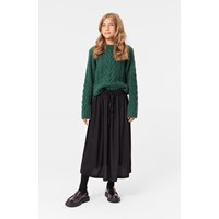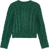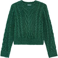 Grön tröja tillverkad i en mjuk alpackaullsblandning. Normal passform med en rund hals och ribbade kanter på ärmarna, halsen och nederkanten. Tröjan är mjuk, varm och har ett vackert flätstickat mönster.