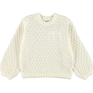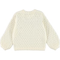 Gulia är en ljus stickad töja med fint hålmönster. Tröjans ärmar har en fin klockad form.