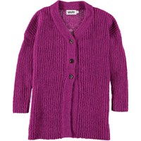 Gwenneth är en lång stickad cardigan i lila med knappar upptill. Gwenneth har v-hals och långa ärmar.