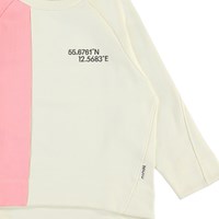 Maggie är en tvåfärgad tröja i rosa och beige. Tröjan har svarta broderade koordinatorer på bröstet. Maggie har en stor passform och bra längd.