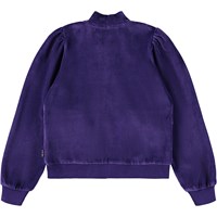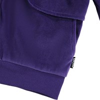 Lila kofta i mjuk velour. Koftan har dragkedja, fickor på sidorna med detaljerade ficklock, rynkor vid axlarna och en bred ribbkant vid ärmar och midja. Kombinera koftan med matchande byxor för en komplett och bekväm velouruppsättning.