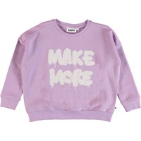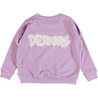 Lila sweatshirt med drop down axlar och tryck framtill.
