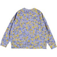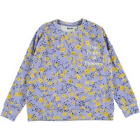 Mandy är en oversized sweatshirt i lila med all-over tryck av små gula blommor. Sweatshirten är broderad med texten 'The power of flowers'.